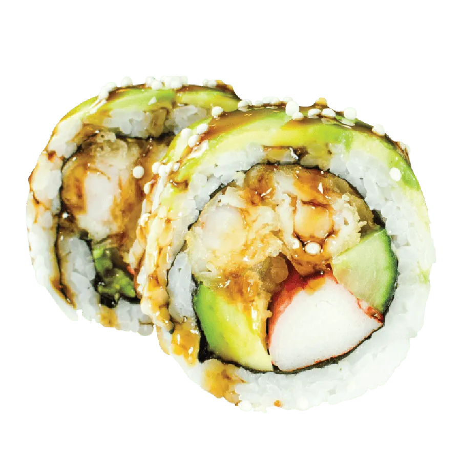 Inside: Cucumber, Avocado, Crab Stick, 4 Tempura Shrimps
